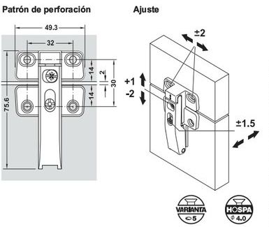 Bisagra 35mm Codo 9 + Base De Montaje Hafele 311.90.501