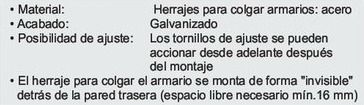 Herrajes para colgar armarios: acero