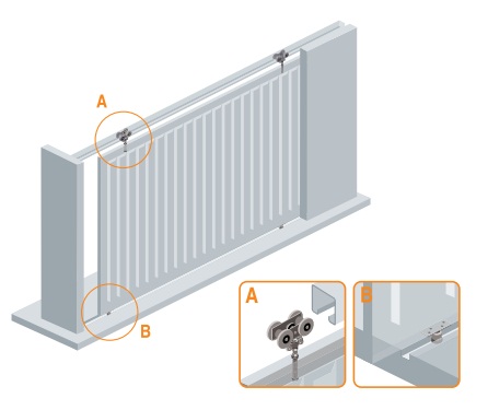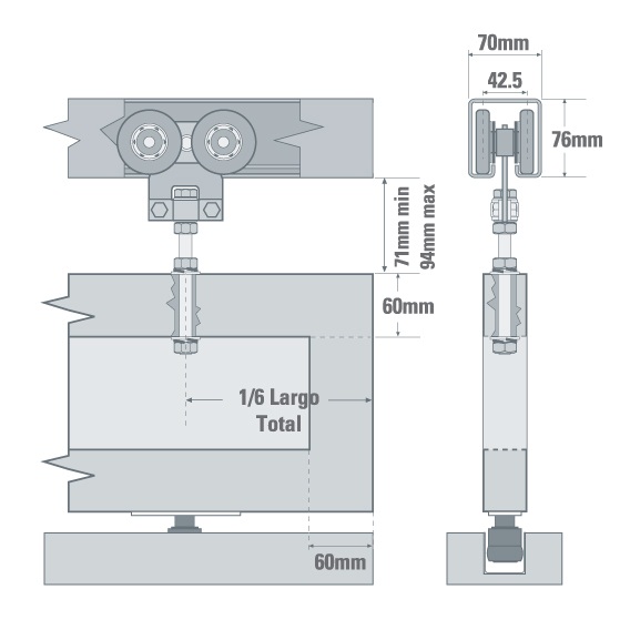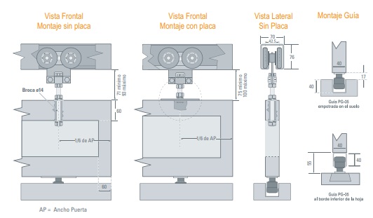 Sistema corredizo colgante, fabricado en acero templado con rodamientos de alta precisión.
