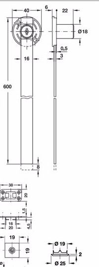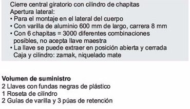 Cerradura giratoria para sistema central de cierre, Con cilindro de chapitas de montaje fijo, Para montar en la pared lateral del armario