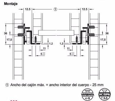 - Regulación de altura mediante agujeros oblongos en el perfil del armario.