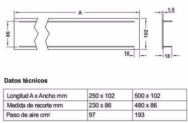 • Ejecución: cantos longitudinales biselados, nervadura pasante hasta el borde en longitud 2000 y 3000 mm