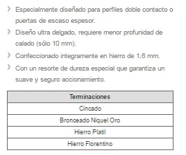 • Especialmente diseñado para perfiles doble contacto o puertas de escaso espesor.