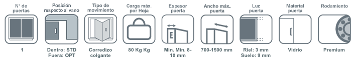 Mordaza para vidrio perforado que se fija a nivel, minimizando la luz entre el riel y el paño a 4 mm.
