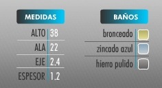 Utilizadas generalmente para ventanas tipo postigo. Fabricadas con excelente material, en chapa doble decapado laminada en frío de 1.25mm de espesor, conteniendo tres agujeros para su correcta sujeción