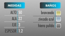 Utilizadas generalmente para ventanas tipo postigo. Fabricadas con excelente material, en chapa doble decapado laminada en frío de 1.25mm de espesor, conteniendo tres agujeros para su correcta sujeción