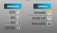 Utilizadas generalmente para ventanas tipo postigo. Fabricadas con excelente material, en chapa doble decapado laminada en frío de 1.25mm de espesor, conteniendo tres agujeros para su correcta sujeción