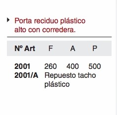 PORTARESIDUOS EXTRAIBLE:MARCA: FARK ( INDUSTRIA NACIONAL )MATERIAL: PLASTICO BLANCOTAPA AVATIBLE, CORREDERAS METALICAS, ANGULOS DE REFUERZO.REJILLA BLANCA EPOXI.