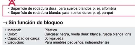 • superficie de rodadura dura: para suelos blandos p. ej. alfombra