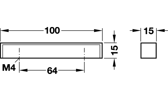 Tirador en Aluminio anodizado natural, de 100mmmm de largo y 15mm de alto.