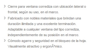 Cierre para ventana corrediza con ubicación lateral o frontal, según su uso, en el marco.