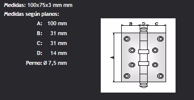 Bisagra Municion 100x75 Reforzada 3mm Ruleman Bronceada (110)