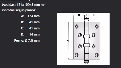 Bisagra Municion 100x75 Reforzada 3mm Ruleman Bronceada (110)