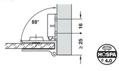 Bisagra intermedia,Ángulo de apertura 170°, Montaje enrasado