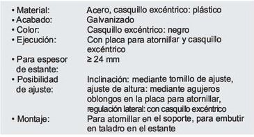 • Ejecución: Con placa para atornillar y casquillo excéntrico