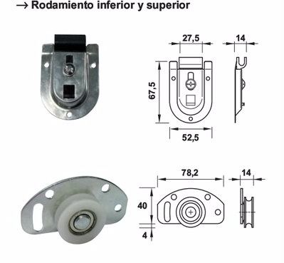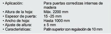 Herrajes para Puertas Corredizas "INFRONT 50K ", con una capacidad de 50kg por puerta Compuesto por un Set de 2 Hojas