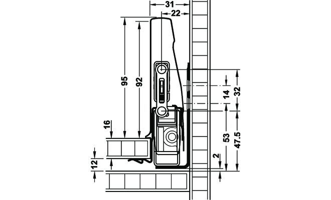 • Product Fijacion Frontal Para Cajon Moovit Hafeleele 553.59.991 $ 1.977,67
