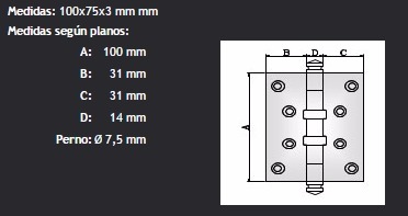 Bisagra Municion 100x75 Reforzada 3mm Ruleman Bronceada (110)
