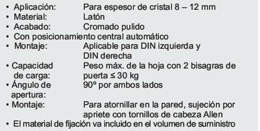 Bisagra vidrio/Pared para mamparas